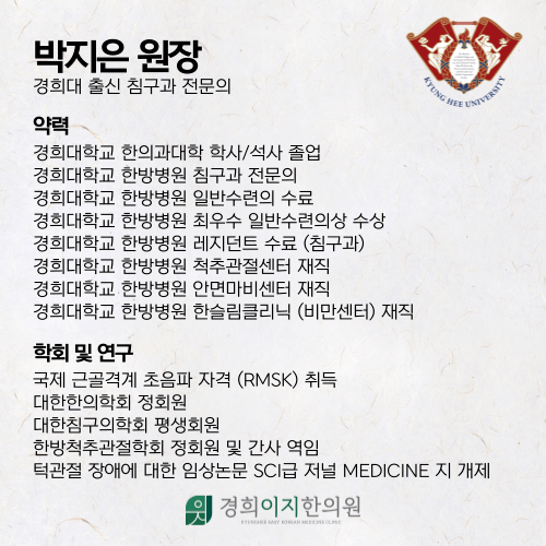 안녕하세요. 경희이지한의원 원장 박지은입니다.
